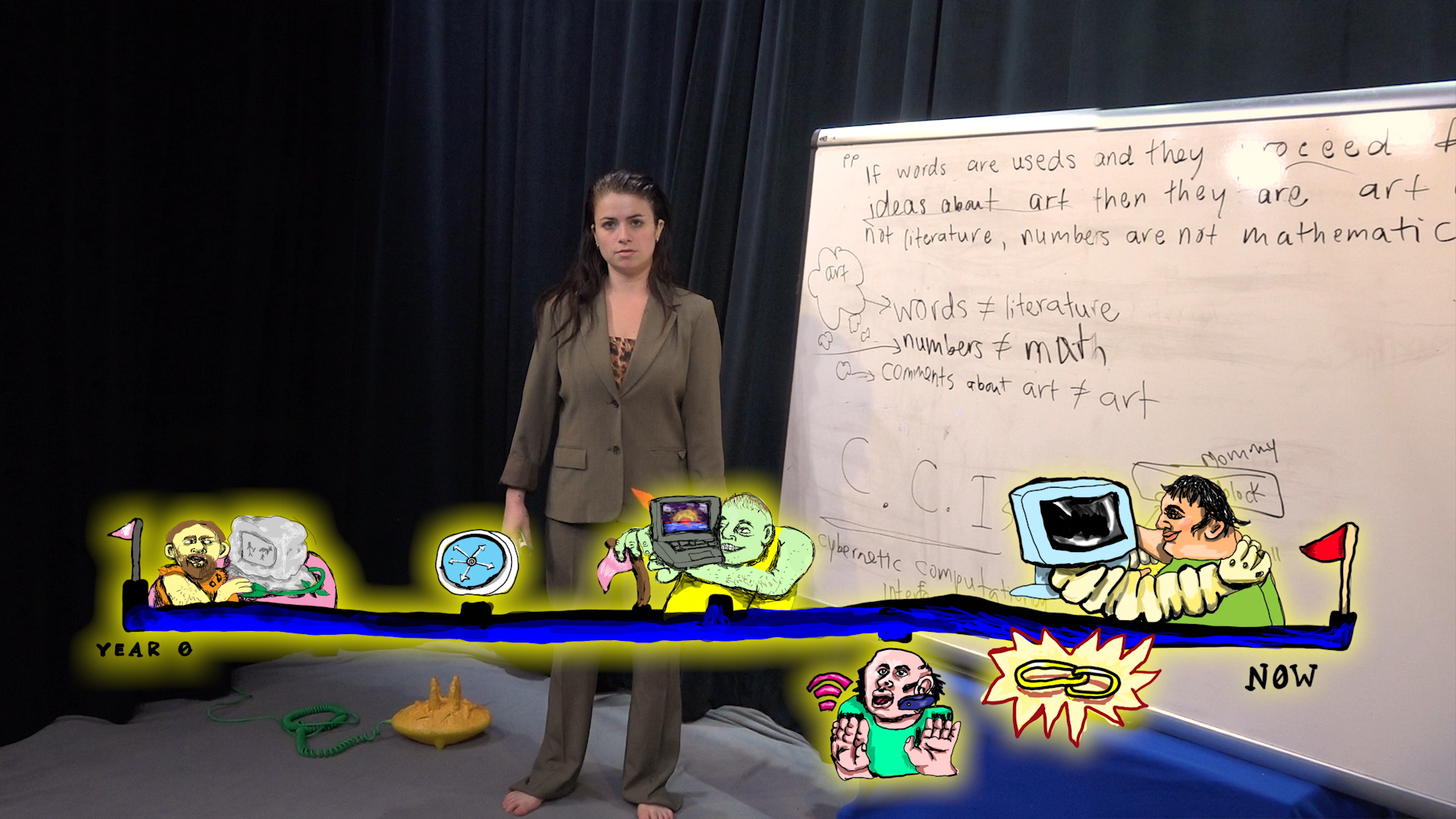 Through the familiar frame of pedagogy, Numbers not Math both dissects and participates in the canon of religious female iconography and the Jungian theory of our collective unconscious. The film scrutinizes the new age mindfulness movement, institutional critique, neoliberalism and the founding principles of conceptual art.